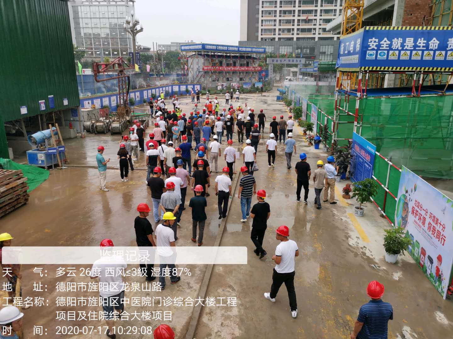 为深度贯彻习近平生态文明思想,落实国、省、市扬尘防止工作部署,严格按照打赢《德阳市蓝天保卫战实施方案》要求,根据德阳市住建局召开的全市建筑工地扬尘治理和错峰生产观摩暨工作推进会安排,2020年7月17日,德阳市旌阳区区领导、区生态环境局领导、区住建局领导、全区在建项目的施工、监理和建设单位项目负责人以及区属企业主要管理人员至我公司所监理的项目——德阳市旌阳区中医院门诊综合大楼工程项目及住院综合大楼项目进行实地观摩。